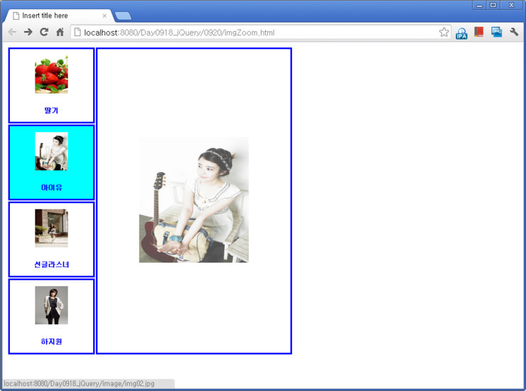 <td width="150px" align="center"><a href="../image/img02.jpg" class="small"><img src="../image/img02.jpg"></a><p>아이유</p></td>