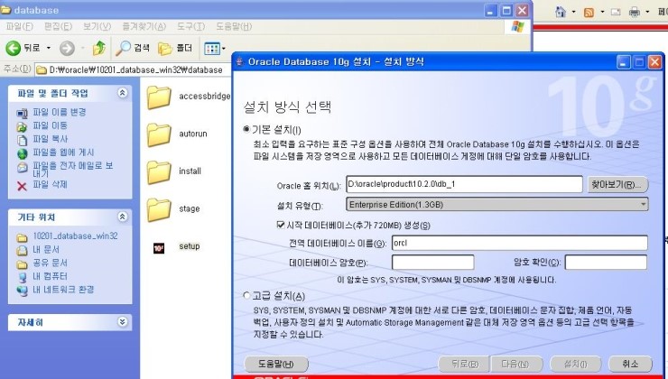 윈도우 xp일 경우 : http://www.oracle.com/technetwork/database/10201winsoft-095341.html