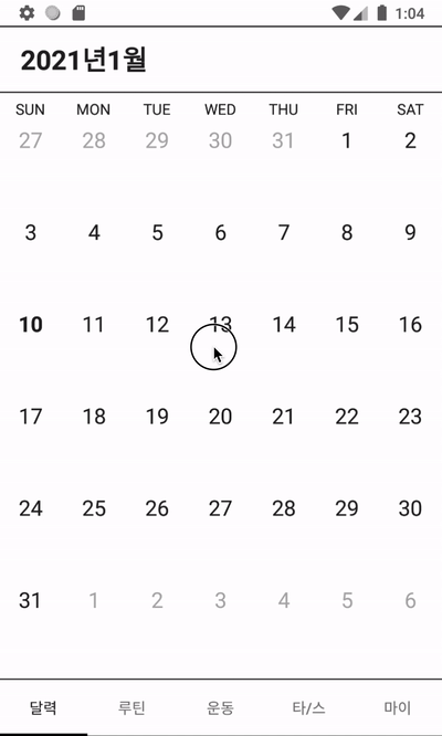 해당하는 달의 달력에 표시할 Int값 42개를 받아와서 RecyclerView에 보여주면 된다.